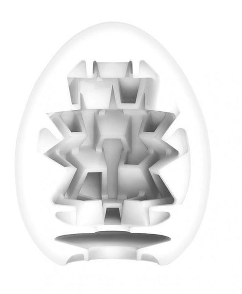 The boxy shapes surrounding the inside of this EGG are angled two ways, to bring pleasure from two directions. The opposing angles create different sensations when stroking up and down!