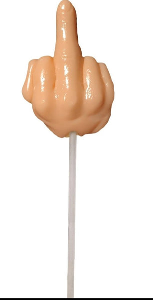 Butterscotch flavored Lollipop. Giving you the “Finger”.